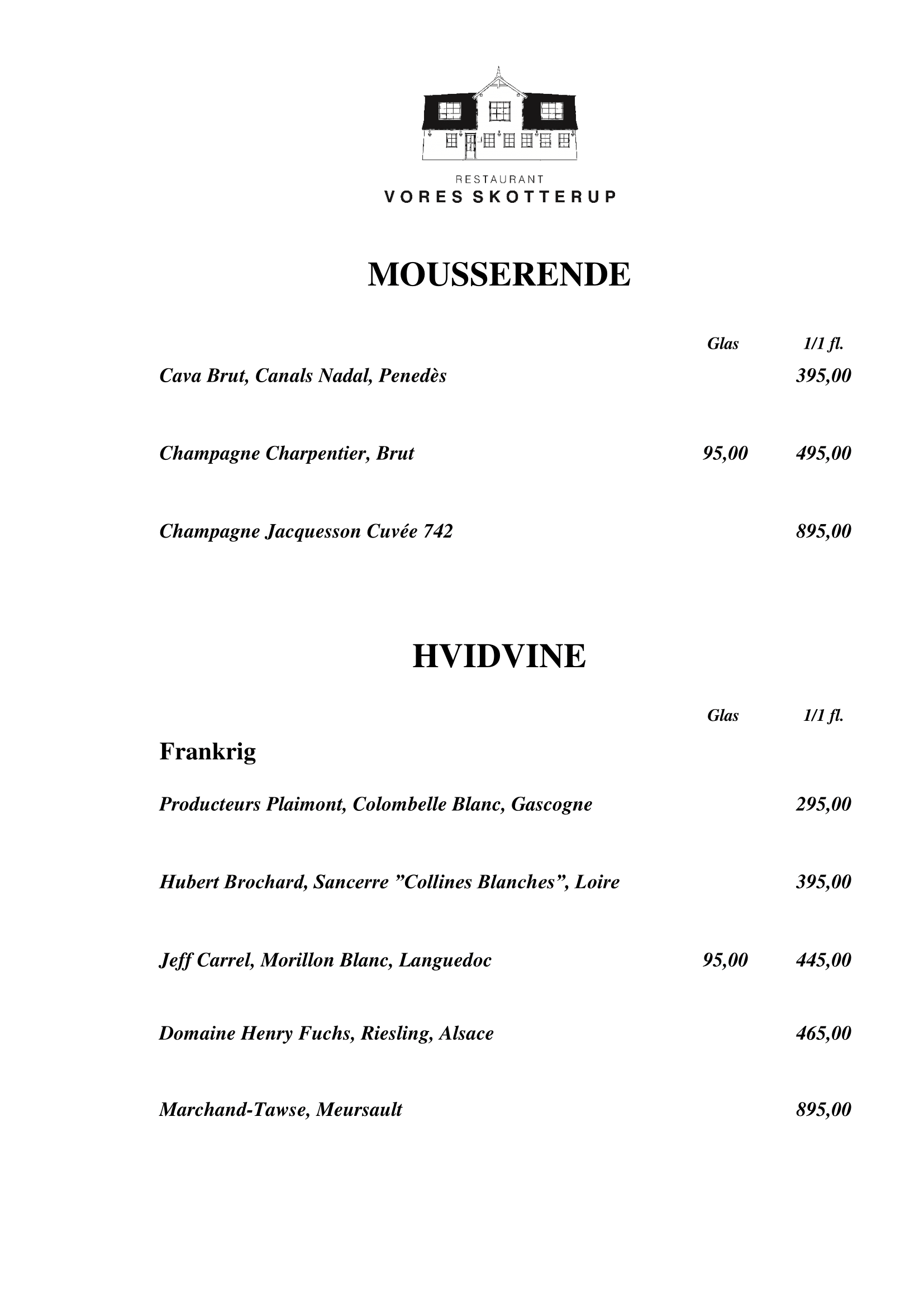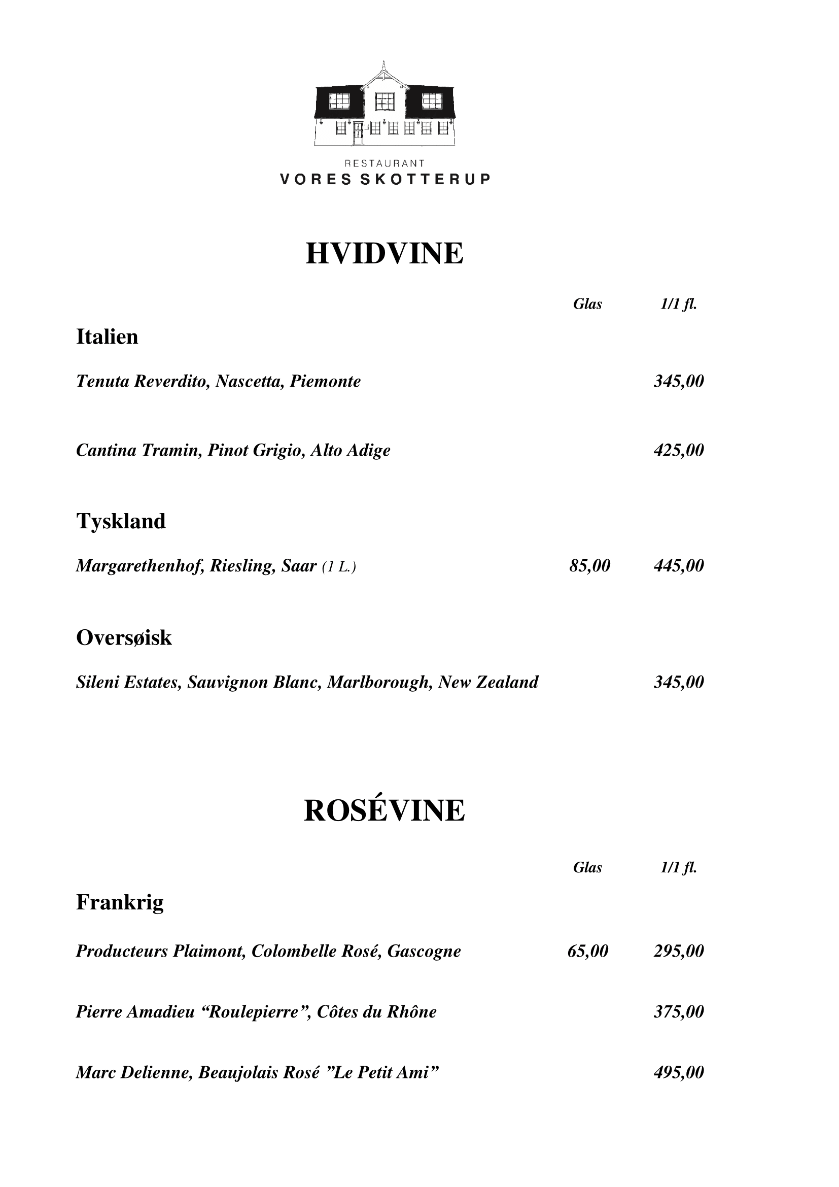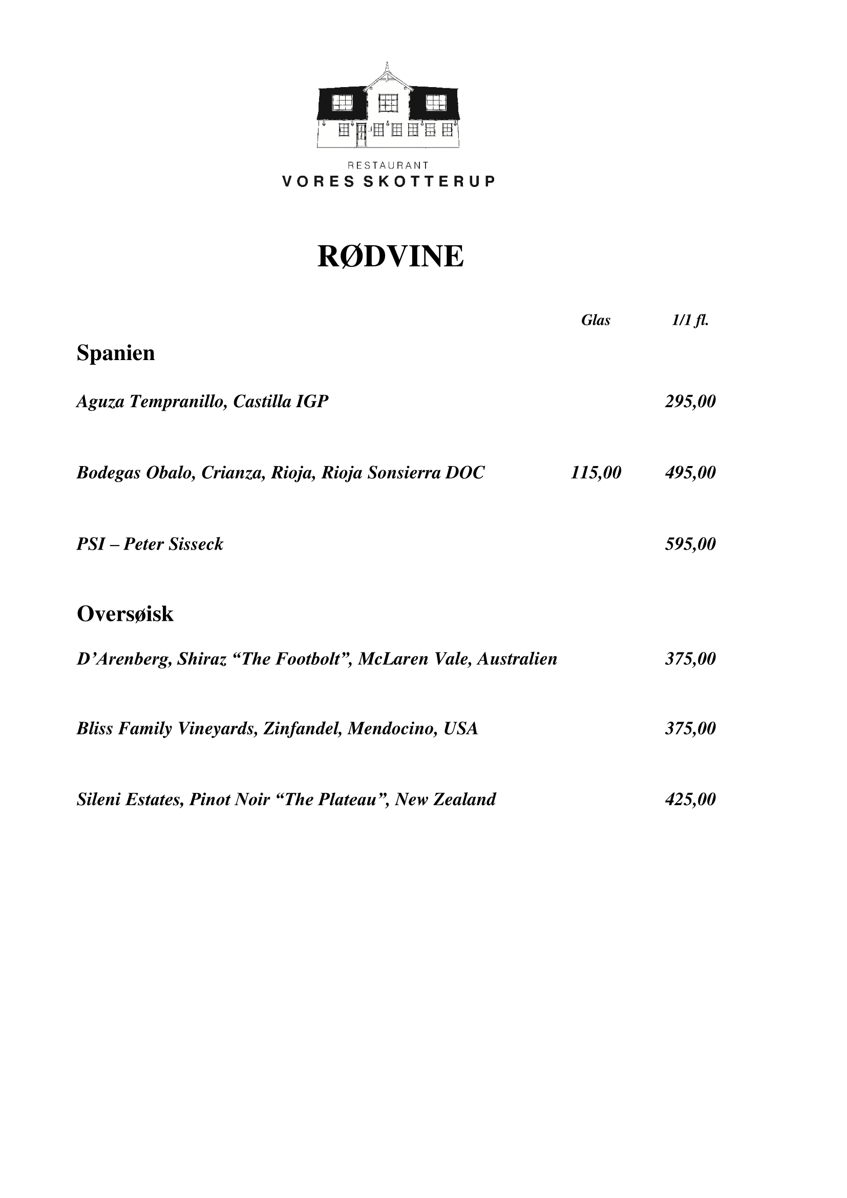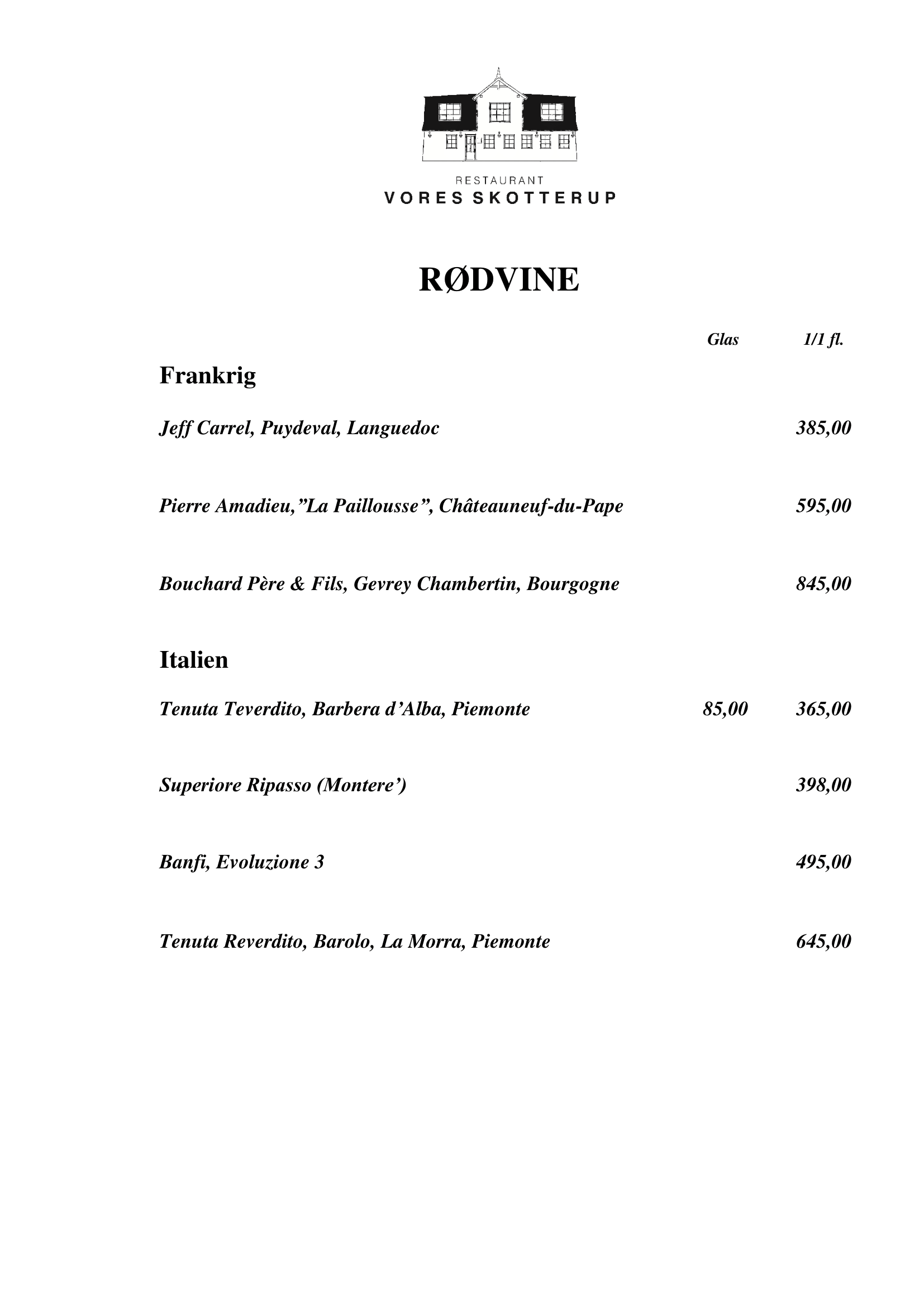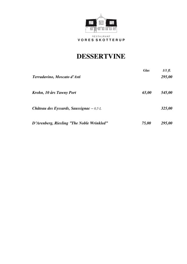 At Vores Skotterup we have a wide selection of both European and overseas wines. We specialize in both red and white wines, which you can see on the menu below.